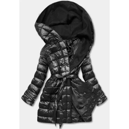 Černá prošívaná bunda se dvojitou kapucí (L22-9862-1)