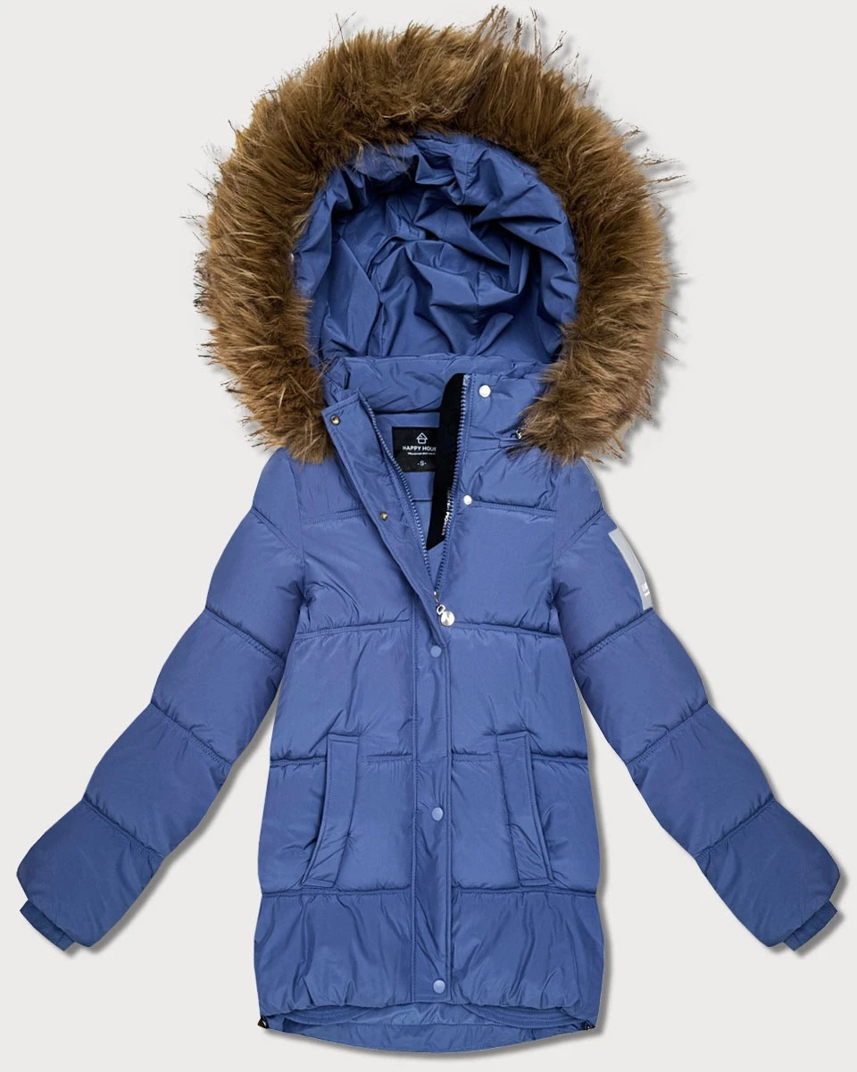 Světle modrá péřová bunda s kapucí (KK60612)