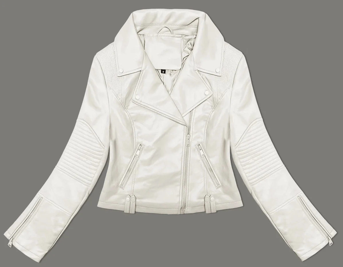 Bunda ramoneska v ecru barvě s asymetrickým zipem J Style (11Z8130)
