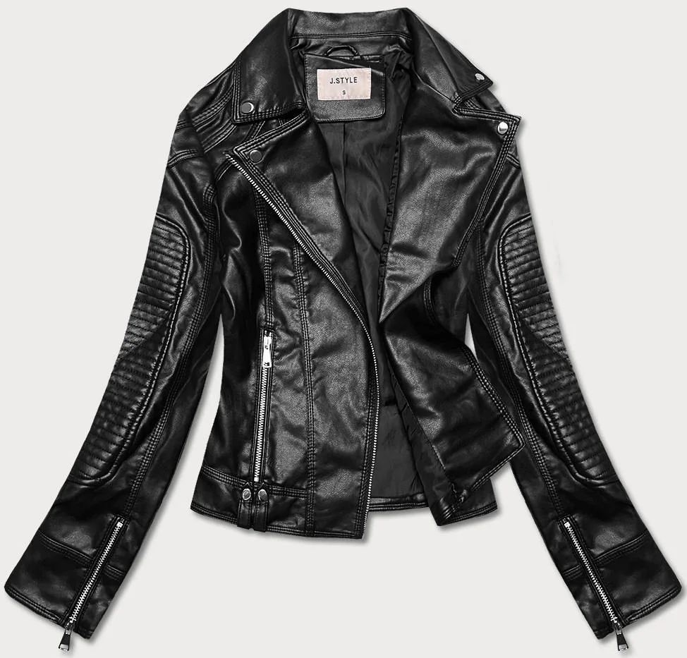 Bunda má jednoduchý střih, límec, dvě kapsy a zapíná se šikmým zipem. Model má délku k bokům.