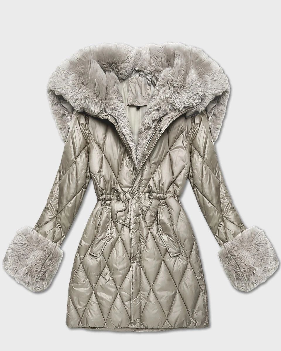 Béžová bunda s kožešinovou kapucí, která tvoří límec (T3-2635#-62)