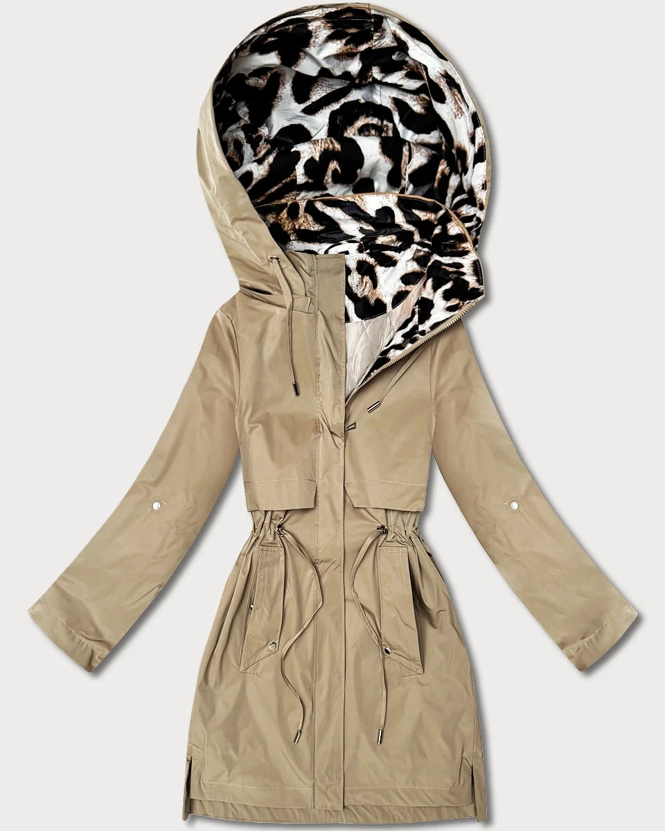 Kurtka z ozdobnym wykończeniem Goodlookin beżowa-panterka (B8521-12)