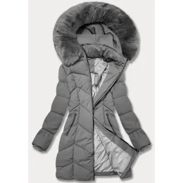 Tmavě šedá dámská zimní plus size bunda s délkou do poloviny stehen S'west (B8306-70)