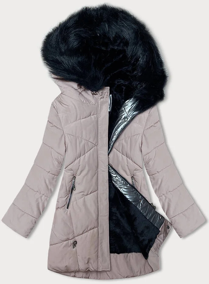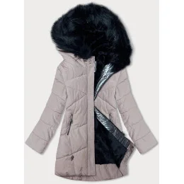 Dámská zimní bunda v barvě nude s kožešinovou podšívkou (V715)