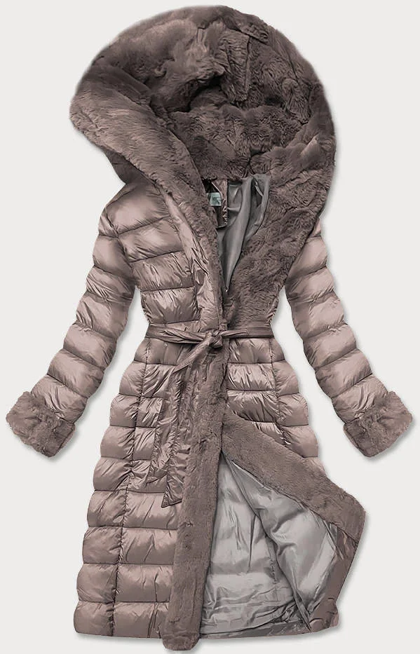 Dámská zimní bunda v barvě cappuccino s kapucí (fm09-3)