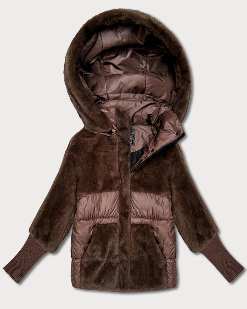 Hnědá dámská zimní bunda s kapucí Goodlookin (LD-5562)