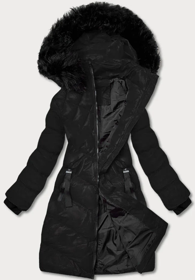 Černá dámská zimní bunda s ozdobným prošíváním (5m730-392)