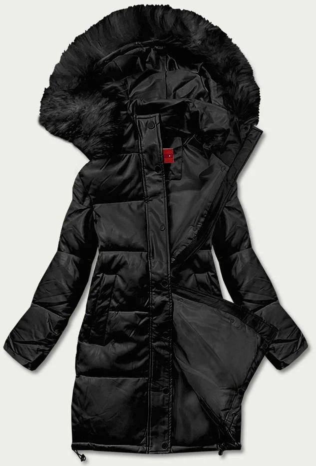 Černá dámská zimní bunda z ekologické kůže (TY038-1)