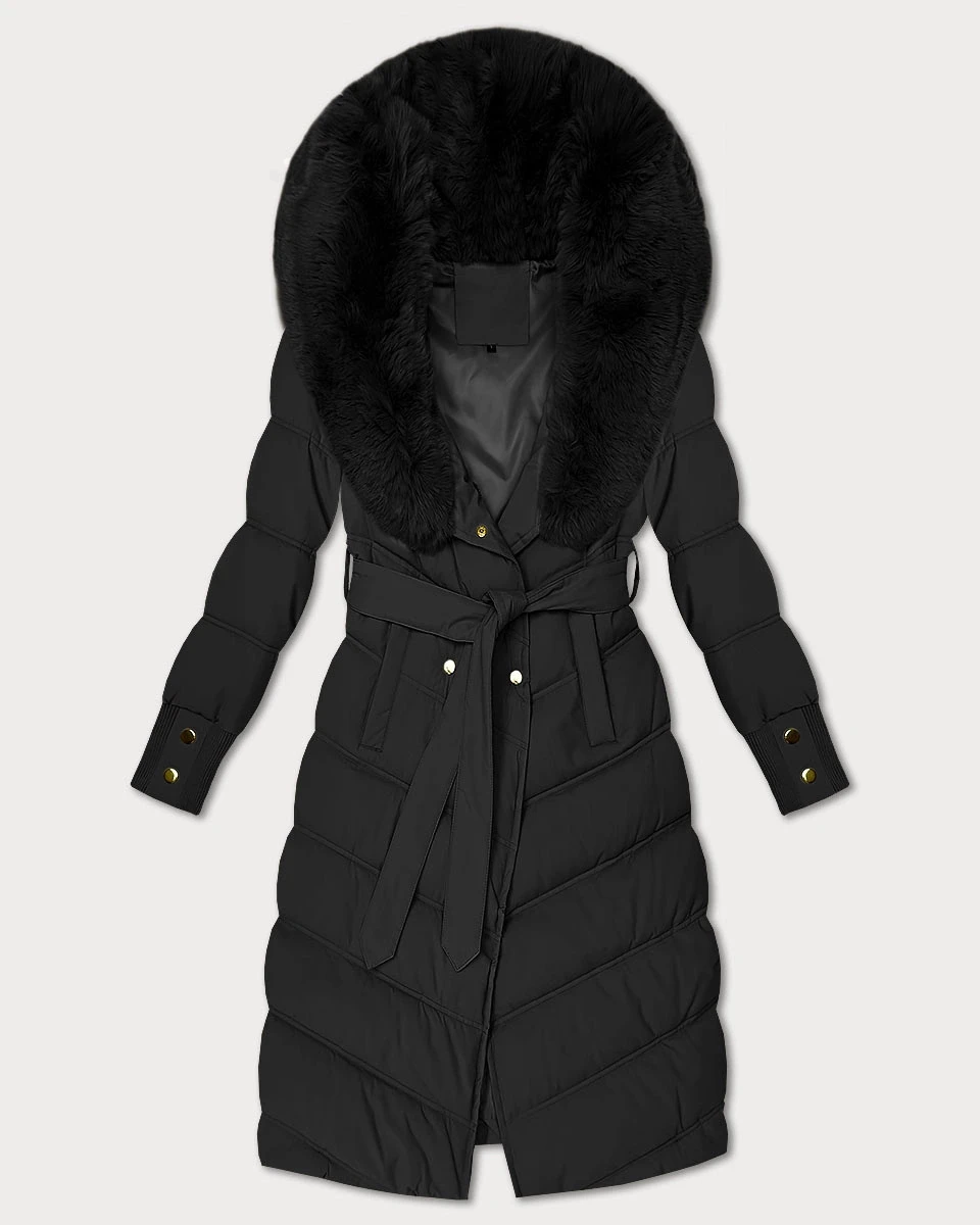 Černá zimní bunda s kožešinovým límcem S'west (R8500-1)