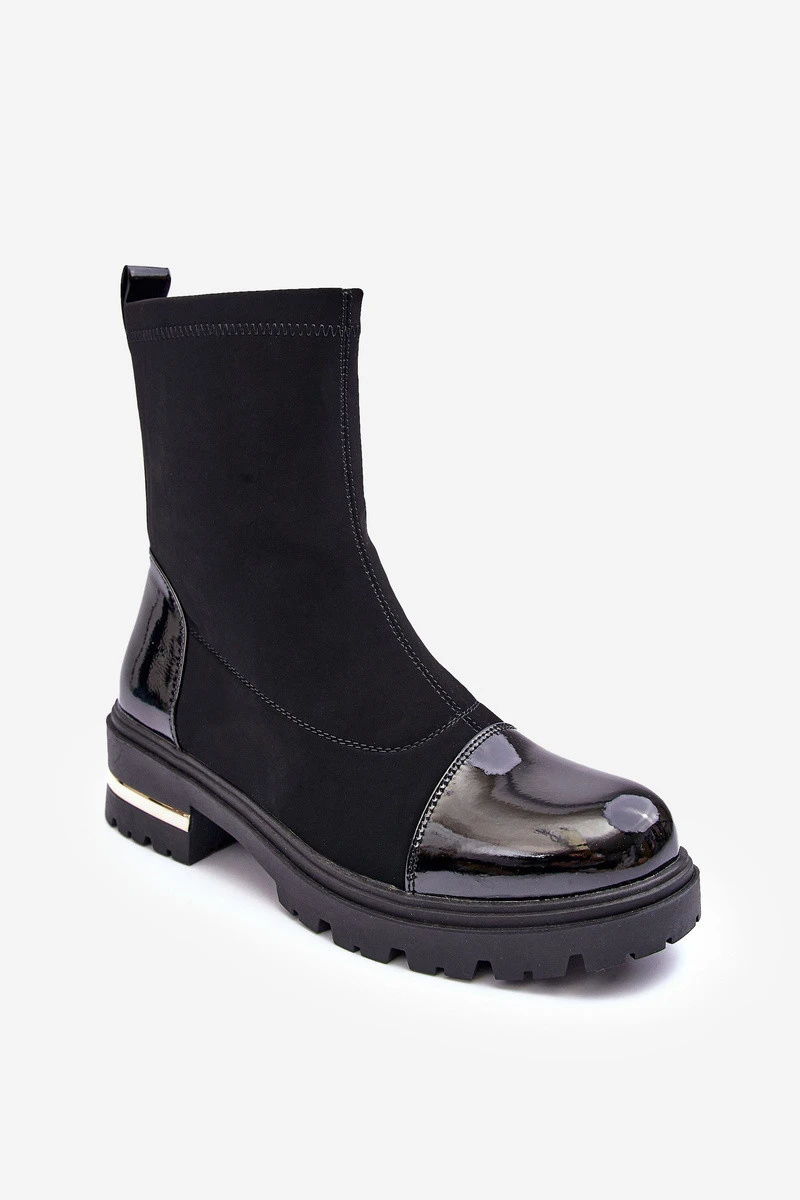 Boty ženy se nacházejí na plochém podpatku a platformě. Vyrobeno z eko kůže. Špičky zaoblené. Střed zateplený obuvním kožíškem. Na podpatku zrcadlová ozdoba. Model uzavřený na zip po straně horní části. Klasický model pro mnoho podzimních stylů! Při výběru velikosti se řiďte tabulkou velikostí.