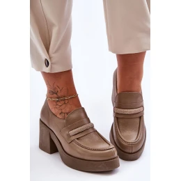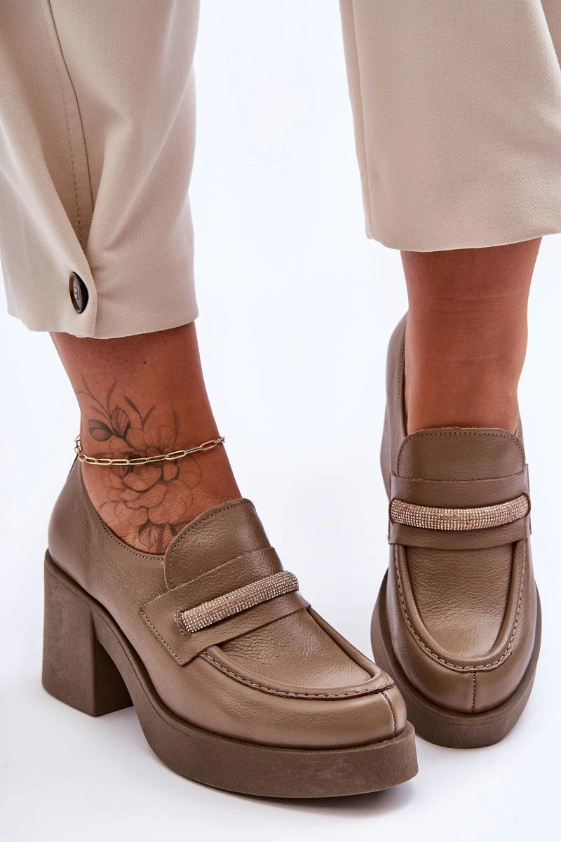 Kůže Polobotky Na Sloupku S Ozdobou Tmavě Béžové Gelanor