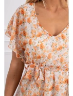 Představujeme vám pohodlné květinové šaty. Šaty s vázáním v pase a výstřihem do V. Velmi módní střih. Šaty jsou vyrobeny z vysoce kvalitního materiálu. Velikost je univerzální a vyhovuje dámám, které nosí velikost S, M nebo L.
