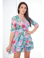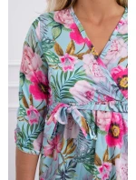 Představujeme vám pohodlné květinové šaty. Šaty s vázáním v pase a výstřihem do V. Velmi módní střih. Šaty jsou vyrobeny z vysoce kvalitního materiálu. Velikost je univerzální a vyhovuje dámám, které nosí velikost S, M nebo L.