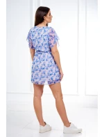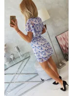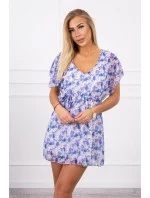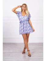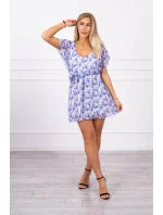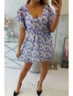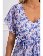 Květinové šaty s vázáním v pase ve fialové barvě