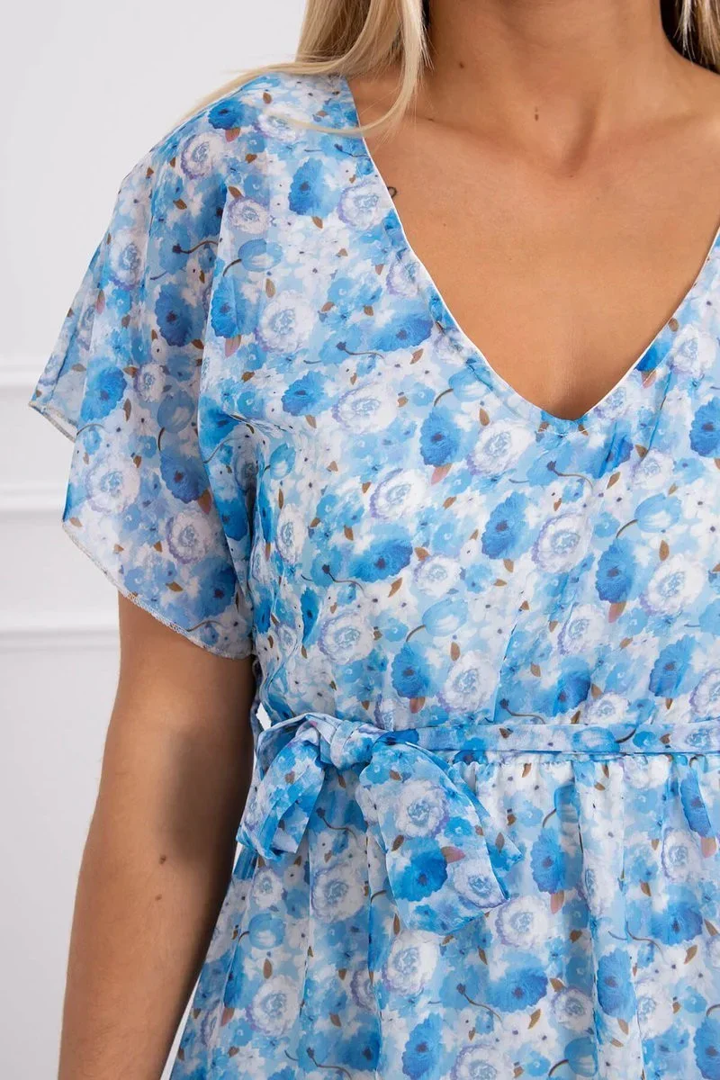 Představujeme vám pohodlné květinové šaty. Šaty s vázáním v pase a výstřihem do V. Velmi módní střih. Šaty jsou vyrobeny z vysoce kvalitního materiálu. Velikost je univerzální a vyhovuje dámám, které nosí velikost S, M nebo L.