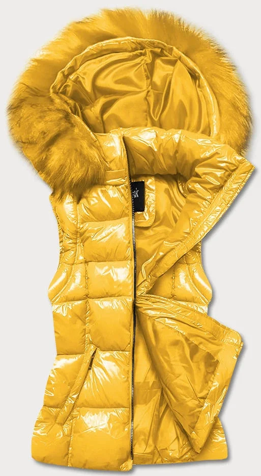 Žlutá lakovaná dámská vesta s kožešinou (DK027-86)