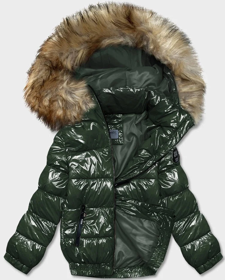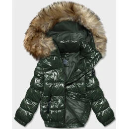 Tmavě zelená lakovaná dámská bunda (B8039-10)