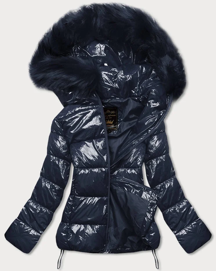 Tmavě modrá lakovaná dámská prošívaná bunda (7693)