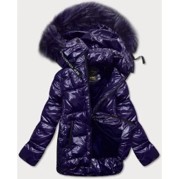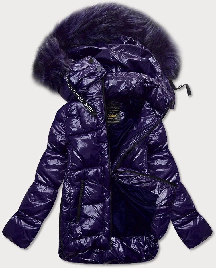 Tmavě modrá lakovaná dámská prošívaná bunda (7697)