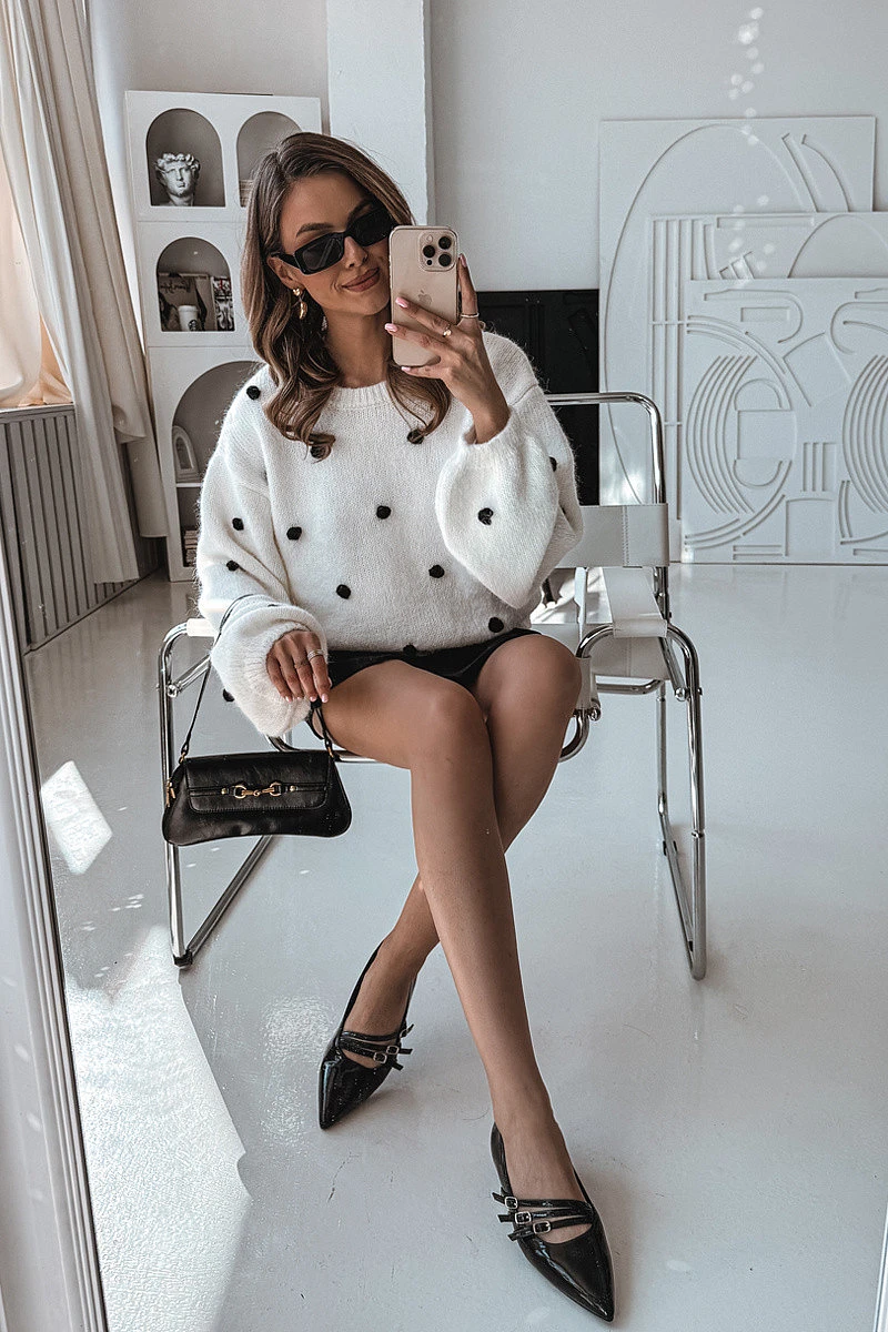 Špičatý nos opticky zeštíhluje nohy a plochý podpatek zaručuje pohodlí po celý den.