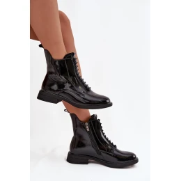 Boty jsou klasického střihu se zaoblenou špičkou a zipem na boku, což umožňuje snadné obouvání a přizpůsobení bot noze. Lakovaná kůže dodává botám lesklý a elegantní vzhled, ideální pro podzimní a zimní outfit.