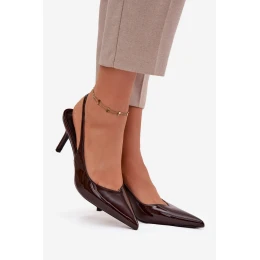 Lakované dámské lodičky na jehlovém podpatku – čokoládové Phelia