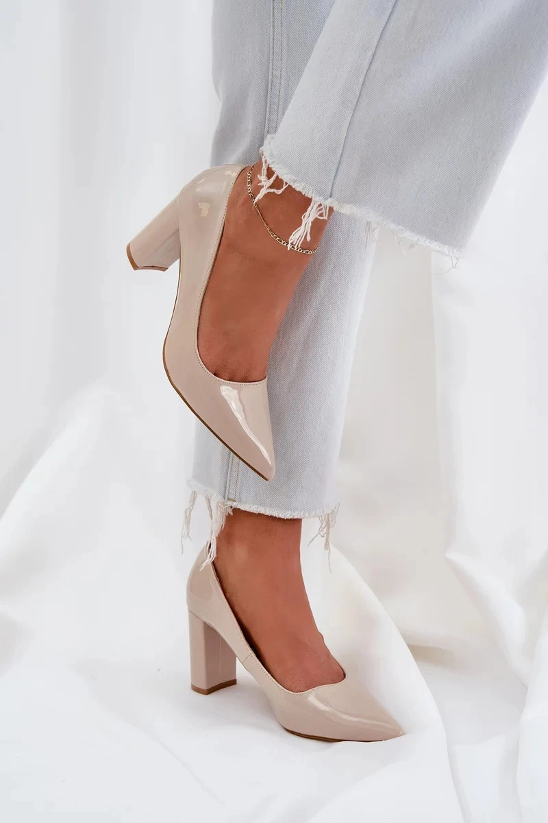 Lakované dámské lodičky na širokém podpatku Kilanne – béžové