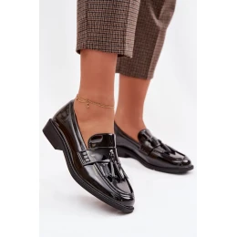 Lakované dámské mokasiny s třásněmi Černé Galera