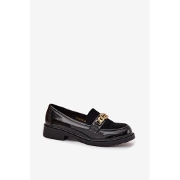 Lakované dámské mokasíny se zlatou ozdobou S.Barski – černé