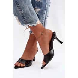 Lakované dámské pantofle na podpatku černé Lirissa