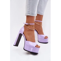 Lakované dámské sandály na podpatku a platformě fialové Horvia