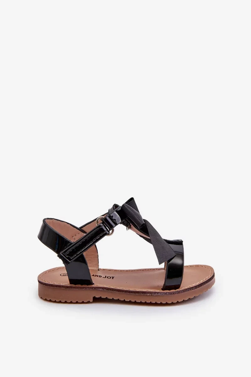 Lakované dětské sandály s mašlí na suchý zip, Black Joratia