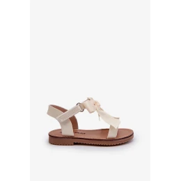 Lakované dětské sandály s mašličkou na suchý zip, světle béžová Joratia