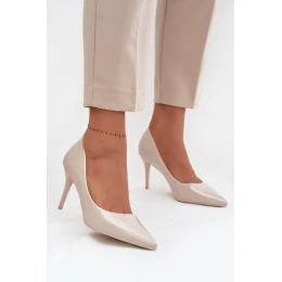 Lakované Eko Kožené Dámské Lodičky Se Špičatými Nosky Světle Béžové Jadira