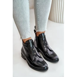 Lakované Kotníkové Boty Na Zip Zateplené Plochý Podpatek S.Barski Černé