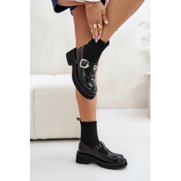 Lakované Kotníkové Boty Se Ponožkou A Přezkou Nazouvací Černé