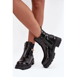 Lakované kotníkové boty zimní s ozdobnou páskou černé Vivessa