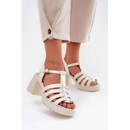 Lakované Kožené Dámské Sandály Na Podpatku Světle Béžové Vinceza 66621