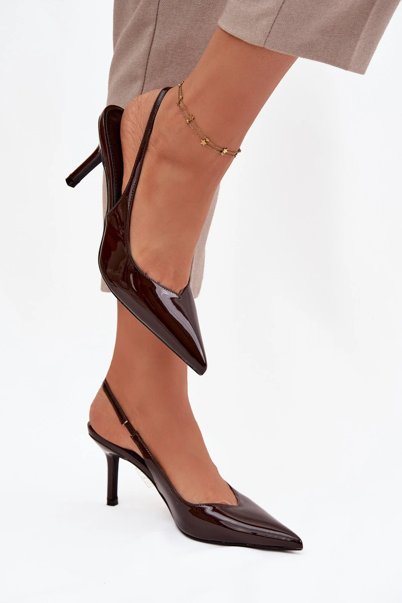 Lakované lodičky na jehlovém podpatku Čokoládové Phelia