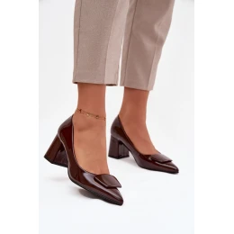 Lakované lodičky na podpatku s ozdobou čokoládové Isoline