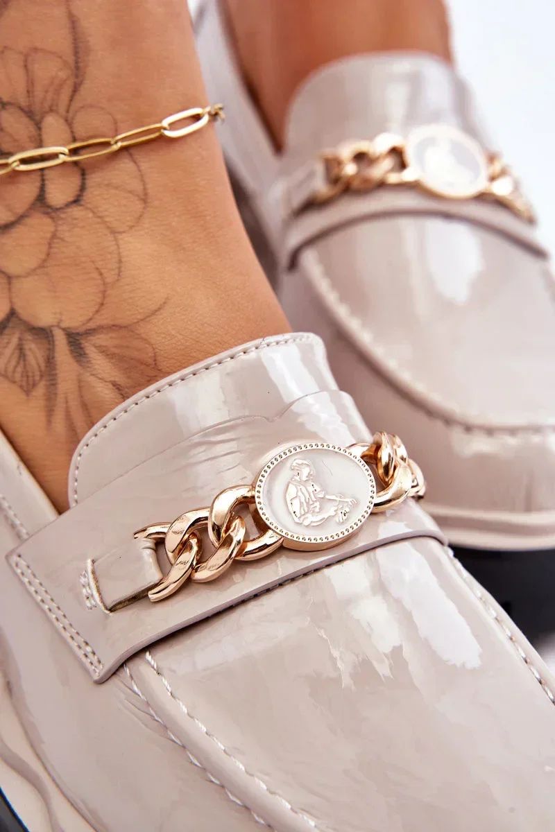 Nádherné mokasíny vyrobené z eko kůže! Tento střih je ideální pro sezónu jaro-podzim. Svršek po kotníky s ozdobným řetízkem vpředu. Podešev je vyrobena z pryžového materiálu s nášlapem. Boty byly umístěny na platformě a plochém podpatku. Měkká, pohodlná stélka je vyrobena z přírodní kůže. Tento model se skvěle hodí jak k ležérním, tak k elegantnějším outfitům! Při výběru velikosti se řiďte tabulkou velikostí.