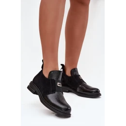Lakovane nízké dámské boty na podpatku vyhřívané Vinceza 58560 černé