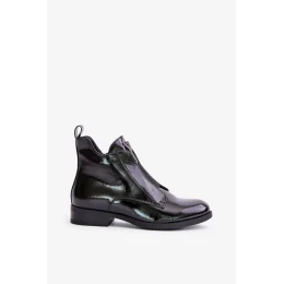 Lakované Nízké Dámské Kotníkové Boty Na Plochém Podpatku Zateplené Černé S.Barski Černé