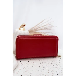Lakovaný dámský peněženka s reliéfem a zlatým detailem červená Evlinne