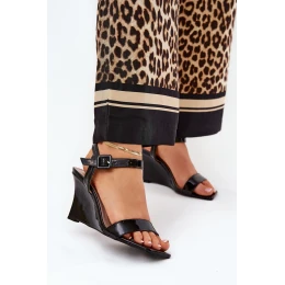 Stylové sandály z eko kůže, usazené na zúženém klínu, které spojují eleganci s moderním vzhledem. Zapínají se na přezku s nastavitelným páskem, což umožňuje dokonalé přizpůsobení noze. Tyto módní sandály budou skvělou volbou na teplé dny, skvěle se hodící jak k šatům, tak k kalhotám. Při výběru velikosti se řiďte tabulkou velikostí.