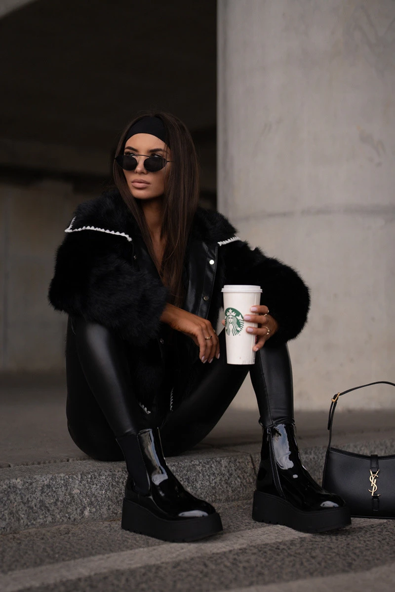 Elegantní lakované boty na platformě a klínku, které spojují eleganci s pohodlím. Zapínají se na zip, což zajišťuje snadné obouvání a svlékání. Vnitřek je vyložený lánem, což zaručuje teplo v chladnějších dnech. Ideální na podzim a zimu, tyto boty budou skvělým doplňkem mnoha módních stylizací. Při výběru velikosti se řiďte tabulkou velikostí.