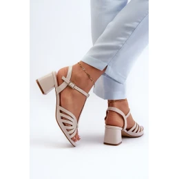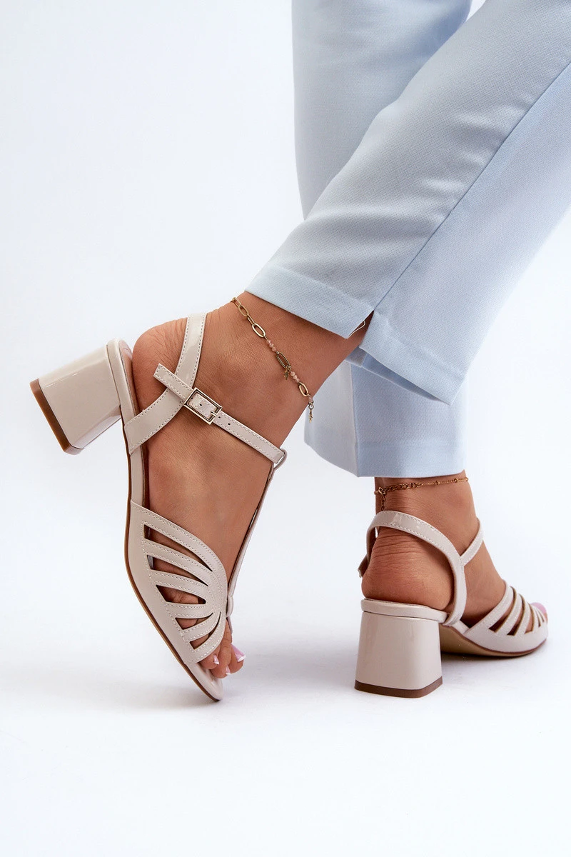 Lakýrované dámské sandály na podpatku Sergio Leone SK880 Béžové
