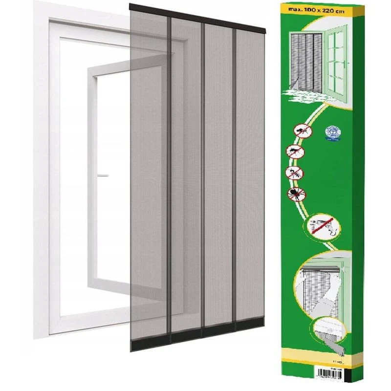 Síť protikomárům do dveří 100X220 CM POLYSTERS + GUMOVÁ PÁSKA je účinným řešením, které chrání před nežádoucím hmyzem a zároveň umožňuje průchod vzduchu. Můžete ji individuálně přizpůsobit výšce dveří jednoduchým nastřižením materiálu a jeho vložením do samosvorné lišty, která se přilepí na rám dveří. Díky upevnění pomocí lepicí pásky ji můžete rychle nainstalovat bez vrtání a šroubování, tj. bez zanechání stop na rámu okna. Výrobek je vyroben z odolné polyesterové síťoviny, která je odolná proti větru a dešti.