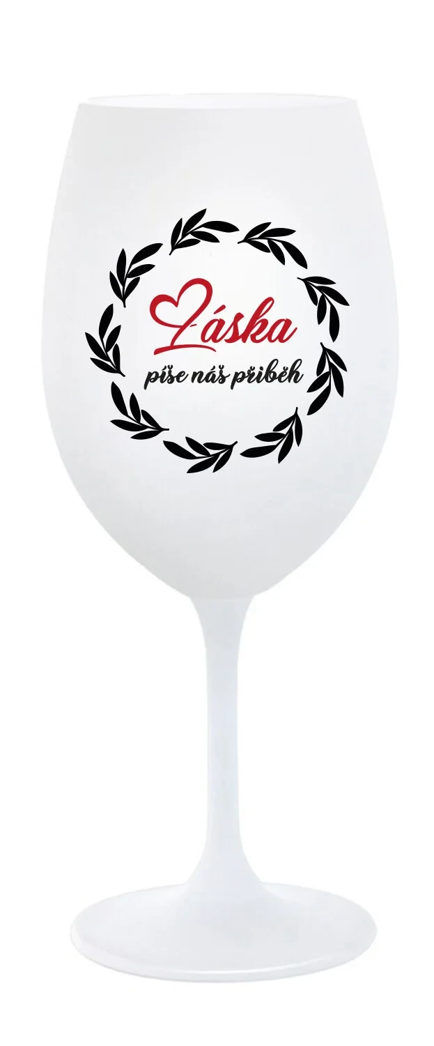 LÁSKA PÍŠE NÁŠ PŘÍBĚH - bílá sklenice na víno 350 ml