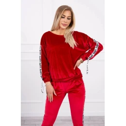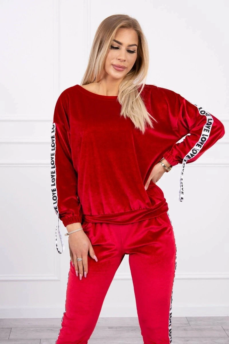 Představujeme vám sadu mikiny a kalhot. Sada z veluru. Mikina má stuhy s nápisem Love. Kalhoty s kapsami a zavazováním v pase. Velmi módní a stylová sada. Sada je vyrobena z vysoce kvalitního materiálu. Velikost je univerzální a vyhovuje dámám velikosti S, M nebo L.